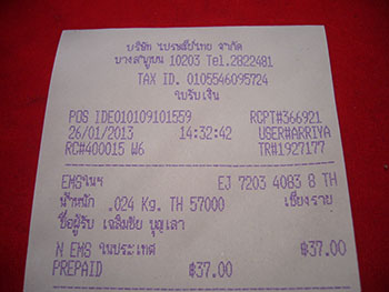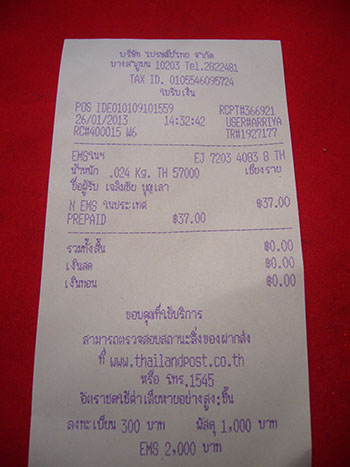รายละเอียด ตามใบเสร็จ ของไปรษณีย์ข้างต้นนี้ ตรวจสอบสินค้าของท่านได้ครับ