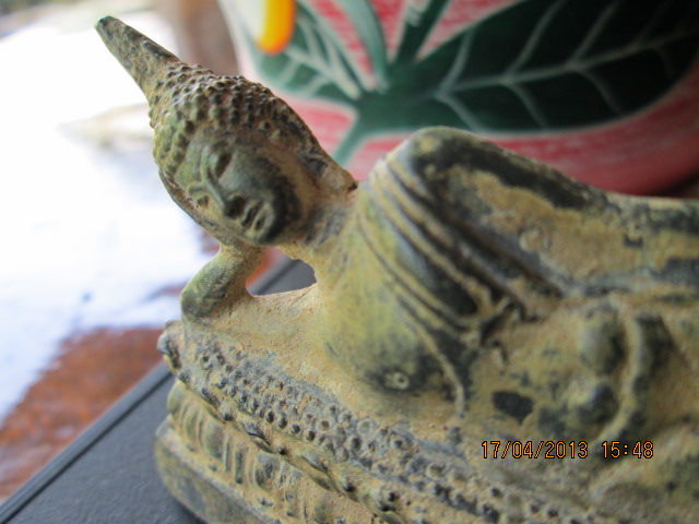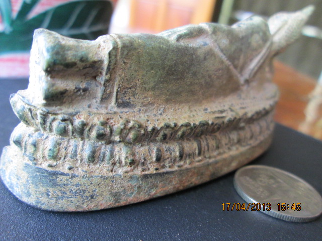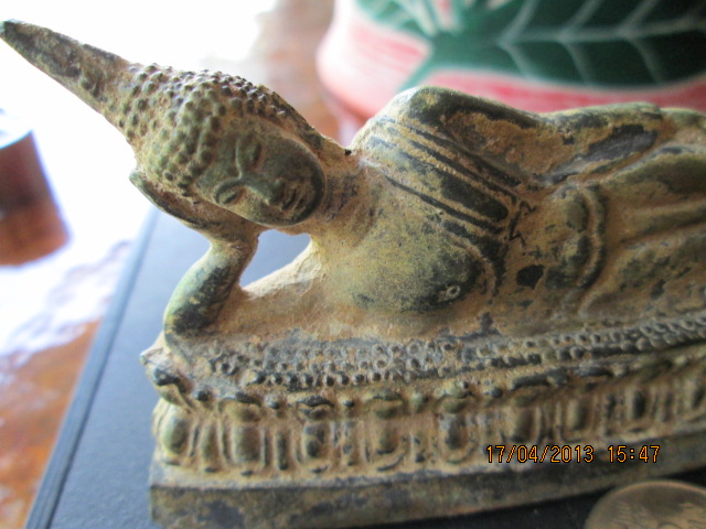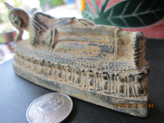 พระนอนเนื้อโลหะผสม เก่า คราบเบ้าเกาะทั่วองค์พระ ไม่มีซ่อม ฐาน 9 ซม.สูงประมาณ4.5 ซม.สวยมากครับได้สัดส่วน ปิด 1,500 ครับ