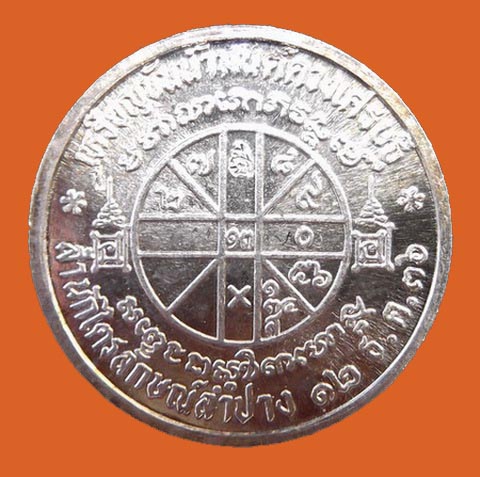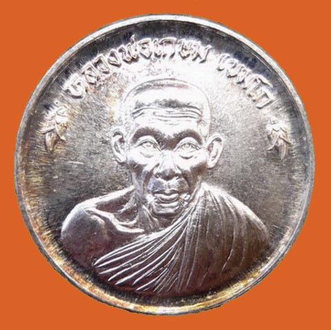 หลวงพ่อเกษม เหรียญขันน้ำมนต์ดวงเศรษฐี ปี36 เงิน+กล่อง