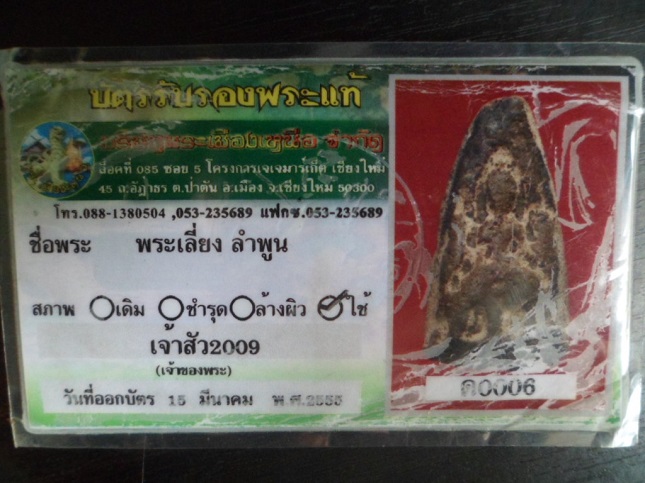 บัตรรับรองพระแท้จากพระเมืองเหนือครับ