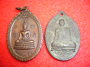 เนื้อทองแดง พระพุทธรูปดัง และเกจิดัง ประจำจังหวัดสุโขทัย พร้อมกัน 2 เหรียญ