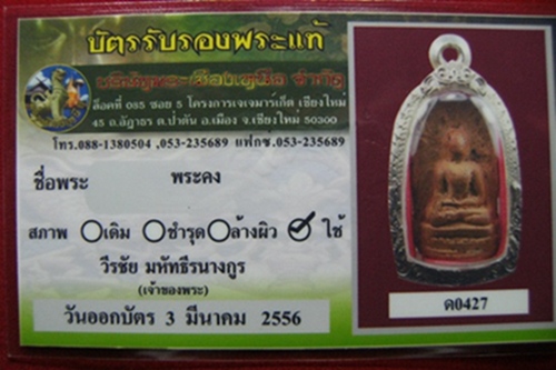 พระคงลำพูน กรุเก่า+ตลับเงิน+บัตรเพื่อนบ้าน