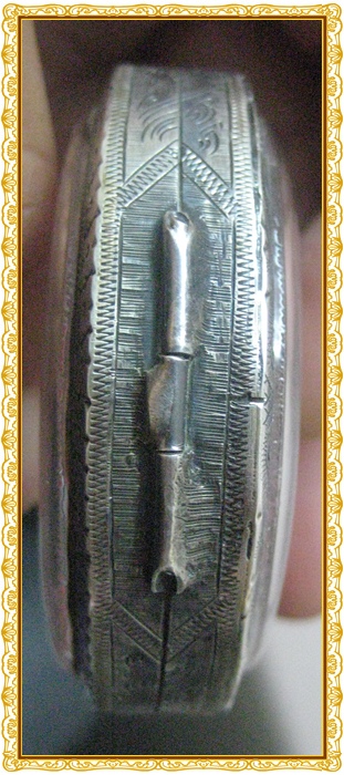 ตลับเงินขนาด กว้าง 4.5 cm ไม่มีห่วงคับ (วัดจากกรอบพลาสติก) เคาะเดียว 650 บาท สนใจติดต่อ 0844367519