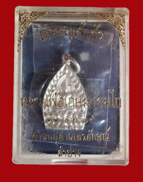 เหรียญเจ้าสัว หลวงพ่อเกษม พิมพ์เล็ก เนื้อเงิน กล่องเดิมๆ