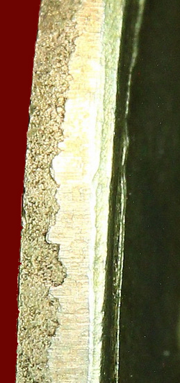 หูวงรี,บนบางล่างหนา,ด้านหน้ามีเส้นแตก ที่10นาฬิกาและที่6นาฬิกา,ด้านหลังขอบเหรียญเนื้อปลิ้นเกินที่11นาฬิกา,ขอบ เหรียญด้านซ้ายและด้านขวาไม่เท่ากัน