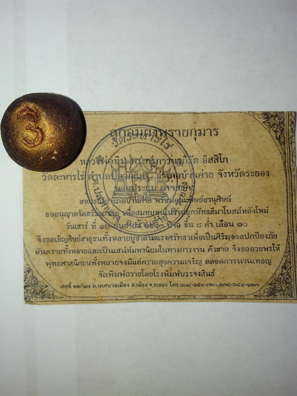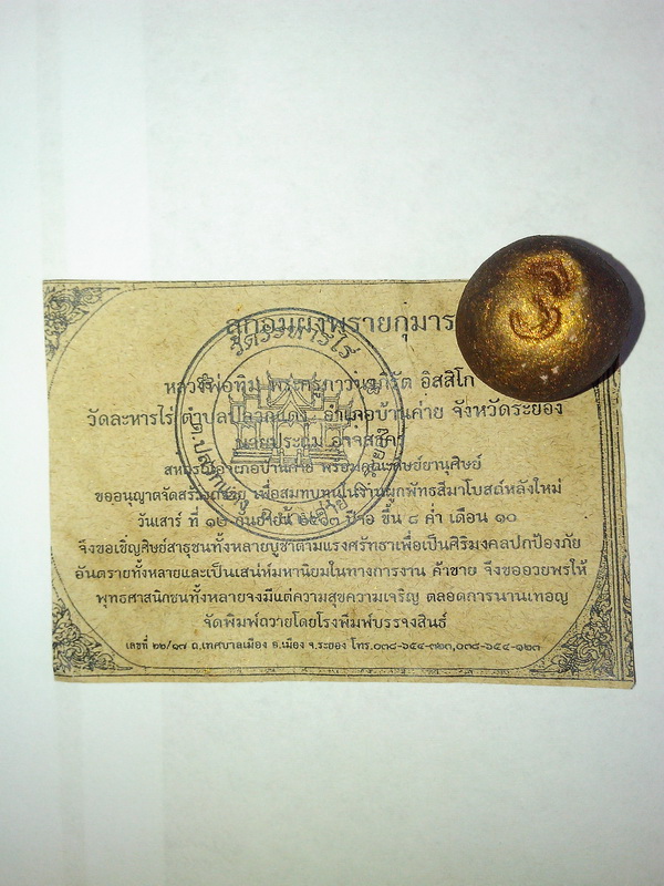 ลูกอมผงพรายกุมารหลวงปู่ทิม วัดระหารไร่ปี2513 โค๊ดเลข3พร้อมใบออกจากวัดเดิมๆ