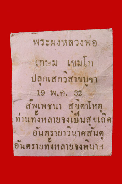 | พระผงหลวงพ่อเกษม เขมโก ปลุกเสกวิสาขบูชา 19 พ.ค. 32 (ขนาดขององค์พระประมาณวัดปกน้ำรุ่น๔)ครับsidtad |