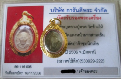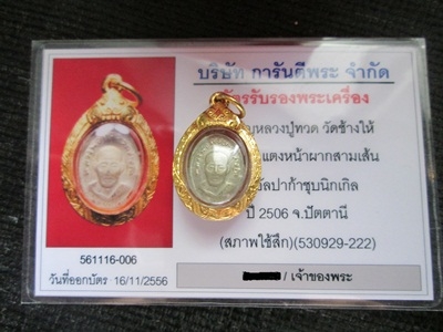 เหรียญเม็ดแตงหลวงปู่ทวด วัดช้างให้ บล๊อคหน้าผากสามเส้น ปี 06 เลี่ยมจับขอบทอง พร้อมบัตรรับรอง