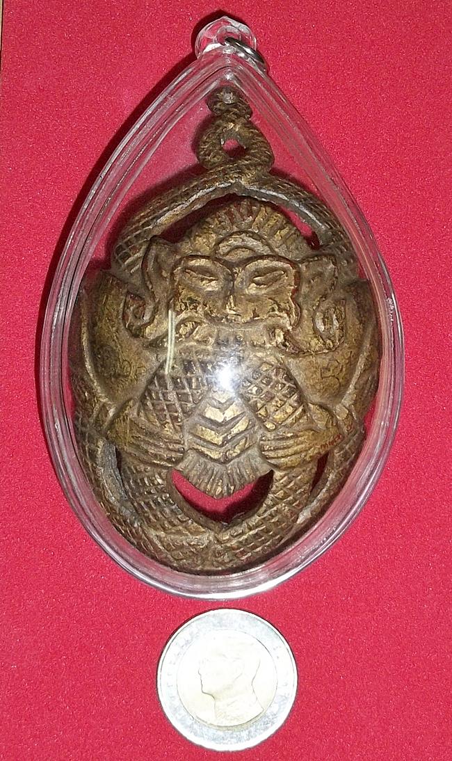 กะลาอันนี้แปลกครับ ราหูอมจันทร์ยังพอเคยเห็นแต่นี้มีนาคอีก2ตัว ด้านหลังจานยันต์ไม่ทราบเกจิอาจารย์ท่านใดเป็นคนสร้างครับ ท่านใดมีความสนใจหรือมีความเห็นอื่นก็สามารถโทรติดต่อหรือแสดงความคิดเห็นแลกเปลี่ยนความรู้กันใด้ครับ ขอบคุณครับ