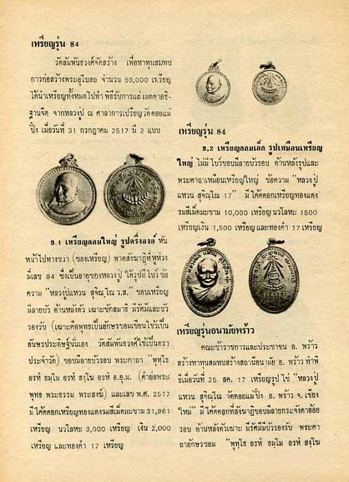 เหรียญรุ่นนี้ วัดสัมพันธวงค์สร้างเพื่อหาทุนสมทบการก่อสร้างพระอุโบสถ ได้นำไปทำพิธีรับการอธิฐานจิตแผ่เมตตา จากหลวงปู่ ณ ศาลาการเปรียญวัดดอยแม่ปั๋ง เมื่อวันที่ 31 ก.ค. 2517 มีทั้งแบบกลมใหญ่และกลมเล็ก ด้านหลัง มีตราวัดสัมพันธวงศ์ เฑาะรัศมีดอกบัว อ.อุ.ม. ที่หูห่วงมีเลข 84 ซึ่งเป็นอายุของหลวงปู่ ที่ด้านหลังมี คำย่อ อ.อุ.ม. (คำย่อ พระะพุทธ พระธรรม พระสงฆ์) สีของเหรียญเป็นสีทองแดงรมเม็ดมะขาม สร้าง 31,961 เหรียญ