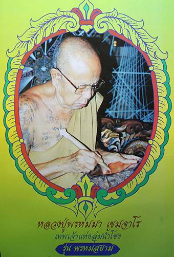 หลวง ปู่พรหมมา ท่านเป็นพระเกจิที่มีอิทธิญาณบารมีแก่กล้า เป็นพระลึกลับอยู่บนยอดเขาห่างไกลผู้คน มุ่งบำเพ็ญจิตภาวนาเป็นสำคัญ เกิดเมื่อ พ.ศ. 2440 บวชเป็นสามเณรเมื่ออายุ12 ปี จากนั้นได้ศึกษาพระธรรมวินัยและวิชากับสมเด็จลุน ที่เวินชัยนคร จำปาศักดิ์ นานถึง 6 พรรษา หลังจากที่สมเด็จลุนได้มรณภาพลง หลวงปู่พรหมมาก็ได้ร่วมเดินธุดงค์พร้อมกับหลวงปู่มั่น ภูริทัตโต ไปหาสถานที่อันสงบเงียบบำเพ็ญภาวนาตามป่าเขา หลวงปู่พรหมมาได้จำพรรษาที่ถ้ำแห่งหนึ่งบนยอดภูเขาควายนานถึง 45 พรรษา กล่าวกันว่าหลวงปู่พรหมมา ท่านมีครูบาอาจารย์เป็นฤาษีตาไฟ มีวิชาอาคมเข้มขลัง ต่อมาได้ธุดงค์ข้ามมายังฝั่งไทย เมื่อปีพ.ศ.2533 หลวงปู่พรหมมาได้เห็นว่าถ้ำสวนหิน ภูกระเจียว ในวันเดือนหงายจะมีสัตว์ป่านานาชนิดวิ่งกันขวักไขว่ เหมาะแก่การฝึกปฏิบัติตน จึงได้พักบำเพ็ญเพียรแต่นั้นมา เมื่อเวลา 22 นาฬิกา 11 นาที 31 วินาที ของวันที่ 23 ส.ค.2545 หลวงปู่พรหมมาได้มรณภาพอย่างสงบด้วยโรคหัวใจ สิริอายุรวม 105 ปี ณ วัดธาตุวราราม จ.เลย วัตถุมงคลที่ท่านจัดสร้างมีด้วยกันหลายรุ่น ซึ่งแต่ละรุ่นล้วนมีประสบการณ์และสร้างอภินิหารให้แก่ผู้บูชาอย่างมากมาย