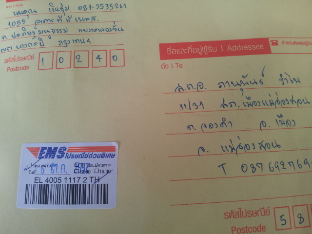ส่ง ส.ต.อ.ภานุพันธ์ รำไพ 11/31 สภ.เมืองแม่ฮ่องสอน ต.จองคำ อ.เมือง จ.แม่ฮ่องสอน 58000 ขอบคุณครับ