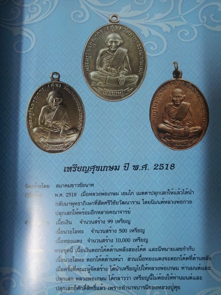เหรียญศุขเกษม หลวงพ่อเกษมปลุกเสก ปี 2518 สภาพบรรยายด้วยรูปครับ เป็นเหรียญที่ค่อนข้างหายากครับ ชอบใส่ราคาพร้อมเบอร์โทรไว้ครับ แบ่งได้ก็แบ่งครับ 0808099929