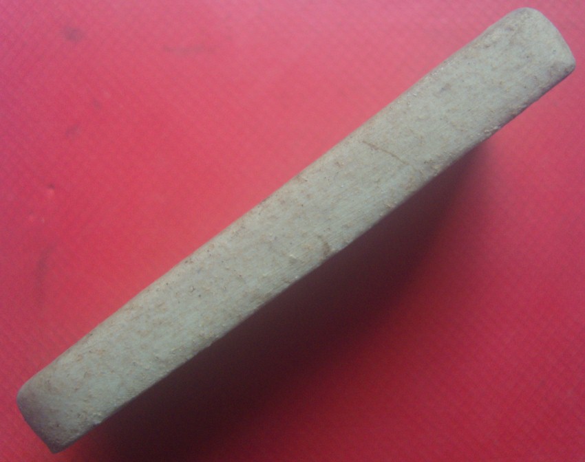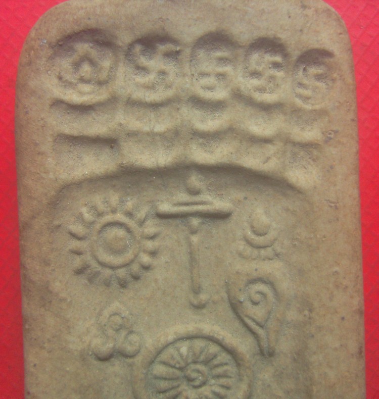 รอยพระพุทธบาทนี้ ผมได้จากชาวบ้าน ที่เมืองโบราณ แม่ขะจาน เวียงกาหลง ได้ตอนลูกชายยังเล็กๆอยู่ ตอนนี้ลูกชายก็ 19 ปีแล้วครับ อยู่กับผมเกือบ 20 ปีแล้ว สมัยนั้นผมทำ ร้านอาหาร รู้จักกับพี่ท่านนึง บอกที่เมืองโบราณรู้จักกับ ลุงที่เป็นนักขุดของเก่าโบราณ แถวนั้น แก่ขุดไปทั่ว ได้ก็ส่งให้ คนรวย และ พิพิธภัณฑ์ ผมอยากไปดูและเที่ยวด้วย ปกติเข้าหาแก่ยากครับ แต่ลุงเขาเป็นญาติทางเมียพี่เขาเลยเข้าง่ายครับ ถ้าเป็นพระ หรือหม้อสวยๆก็ส่ง นอกนั้นก็แล้วแต่ครับ ชิ้นนี้แก่ ก็ไม่รู้เหมือนกัน ผมดูเห็นแปลก และชอบ เลยขอซื้อมา ตอนแรกไม่ให้ ตื่ออยู่นาน แก่จึงให้มา ผมดู มีลักษณะ คล้ายดิน ก็ไม่ใช่ หินก็ไม่เชิง เหมือน เซรามิก สังคโลกด้วยครับ ขนาดฝ่ามือ และหนักด้วย ลุงที่ขุดบอกว่าเป็นเนื้อสังคโลกครับ ส่วนความหมาย ผมยังแปลไม่เข้าใจ เพราะีเครื่องหมาย อยู่หลายอย่างครับ ใครทราบ รู้ เข้าใจ อยากได้โทรมาครับ