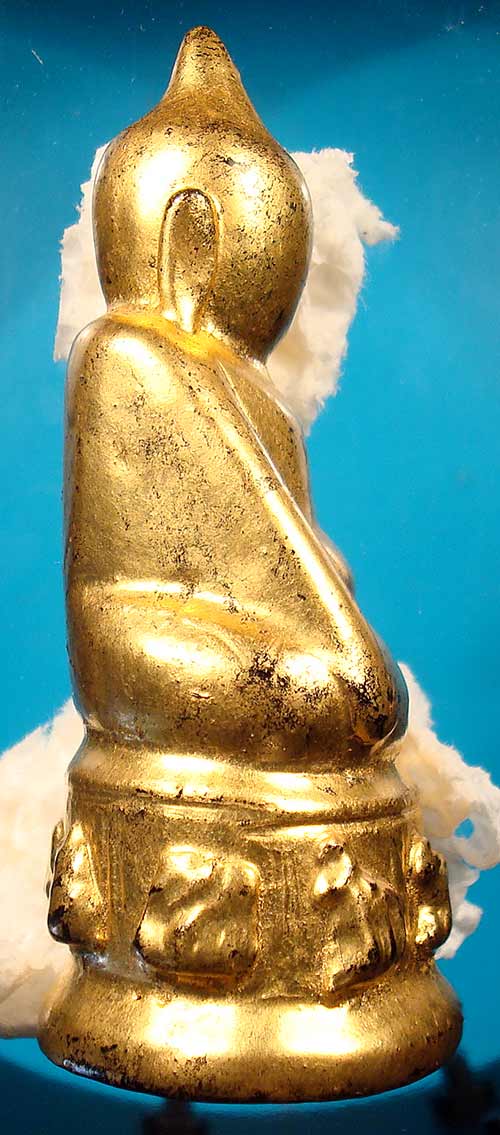 พระบัวเข็ม ไม้ลงรักปิดทองเก่าที่ฐานองค์พระมีนักษัตรต่าง ๆ หน้าตัก 1.5 นิ้ว สูง 3.5 นิ้ว