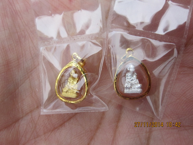 องค์จิ๋ว หล่นหาย ฐานล้อมพลอย กะไหล่ทอง ในกรอบทองคำ(แท้)