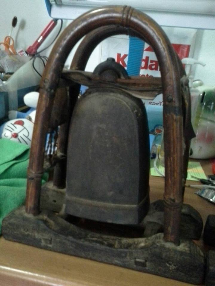 ผางลาง ทำด้วยโลหะลักษณะคล้ายระฆังแต่แบนแคบมีหูร้อย ลูกพางลางหรือลูกตีจะมัดห้อยอยู่ในโพรงกลวงนั้น ทำไม้ยึดพางลาง และให้วางบนหลังสัตว์ได้ โดยการตีไม้ยึดให้ขนานกัน ๒ ท่อน ตัดเส้นหวาย ๒ เส้น สอดไปในรูไม้ที่เจาะไว้โน้มให้โค้งงอเท่ากับความสูงของพางลาง เส้นหวายโค้งทั้ง ๒ เส้นนี้จะขนานกับพางลางพางลางให้แน่น ใช้เชือกร้อยหูพางลางแล้วมัดกับเส้นหวายขนานกัน นำพางลางไปตั้งวางบนหลังสัตว์ ใช้เชือกผูกมัดรอบตัวสัตว์แล้วกลับมามัดตัวไม้รองพางลางอีกครั้งหนึ่ง