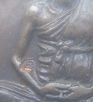 เหรียญหลวงพ่อทิพย์ วัดโพธิ์ทอง บุรีรัมย์ ทองแดง ตอกโค๊ด หลังติดปรกใบมะขาม