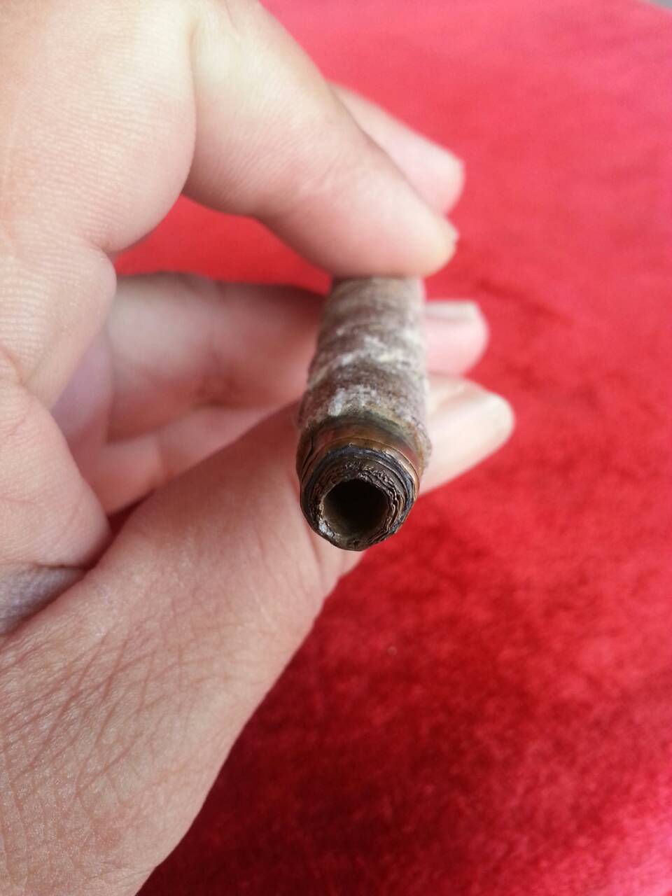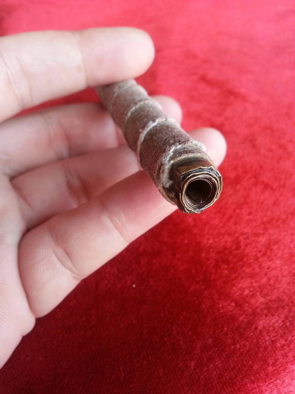ตะกรุดทองแดงเก่าม้วนหนาหลายชั้น ถักเชือก ยาว 4นิ้ว เศษ มาชมกัน
