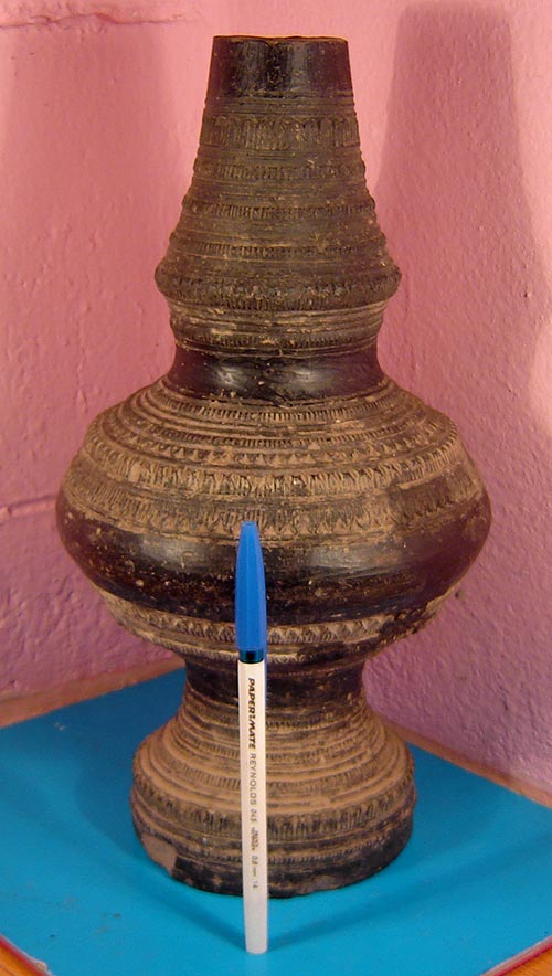 น้ำต้น หรือ คนโท เก่ามาก ๆ ลวดลายสวยงาม ไม่มีแตก ไม่มีซ่อม ใส่น้ำได้ไม่มีรั่ว มีบิ่นนิดหน่อย เนื้อดินเผาสีดำมัน สภาพสมบูรณ์แบบนี้หายากคับ คนชอบของเก่าไม่ควรพลาดคับ ราคาสุดคุ้มแน่นอน