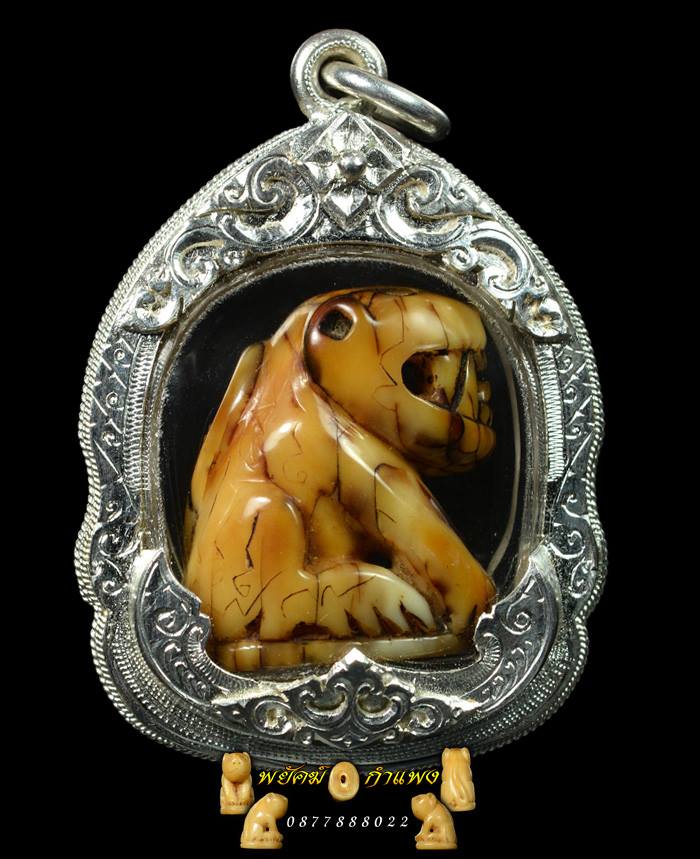 เขี้ยวเสือ หลวงพ่อปาน วัดบางเหี้ย(เสือโคร่ง) จับขอบเงิน ลายสุโขทัย ตัดเท่าหัวแม่มือ