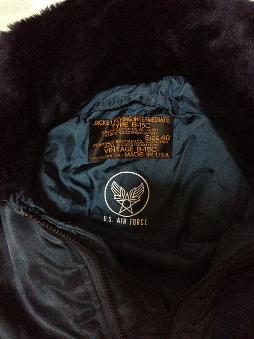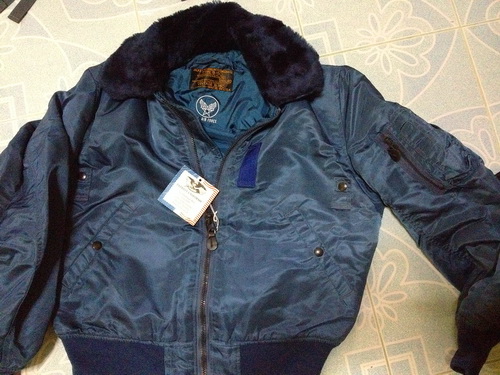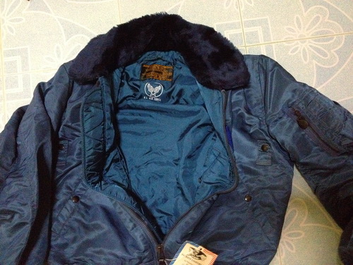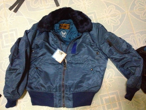 VINTAGE B-15C MADE IN USA U.S. AIR FORCE Size M (MEDIUM) สีน้ำเงินอ่อน ซื้อมายังไม่ได้ใส่สภาพใหม่ 100% หน้าร้านขาย4,500.-บาท (เหมาะกับอากาศหนาวๆ ขอแบ่งให้ในราคาส่ง (พิเศษเคาะเดียว 3,500฿ ครับ) รับประกันของแท้ตลอดชีพครับ