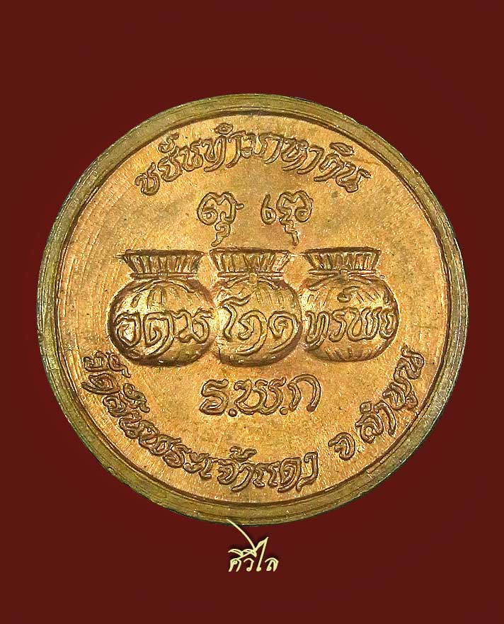 เหรียญ ขวัญถุงโภคทรัพย์ขยันทำมาหากินของพระครูอุดมขันติธรรม(ขันแก้ว อุตตโม) วัดสันพระเจ้าแดง จ.ลำพูนเนื้อทองแดง
