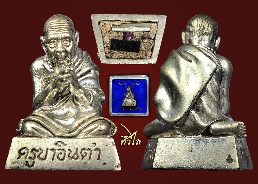 รูปหล่อรุ่นแรกครูบาอินตา วัดวังทองเนื้อเงินหมายเลข 6 ดีกรีแชมป์ มาพร้อมกล่องเดิมครับ