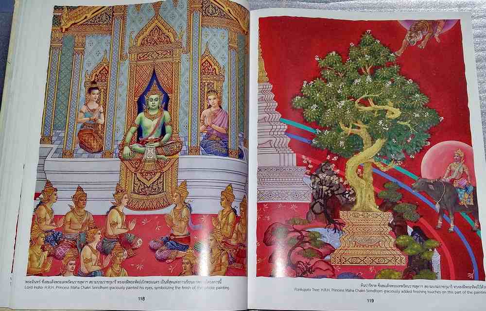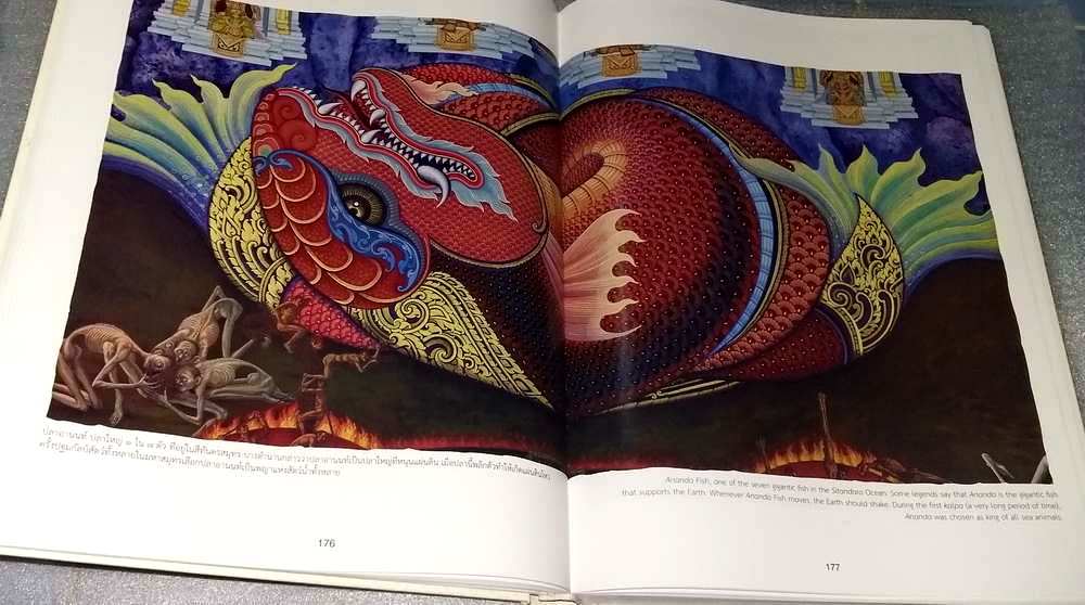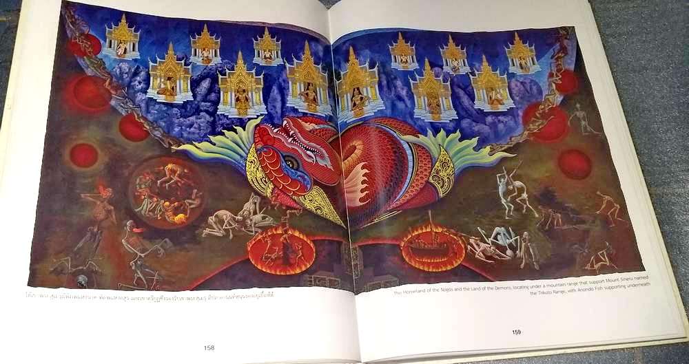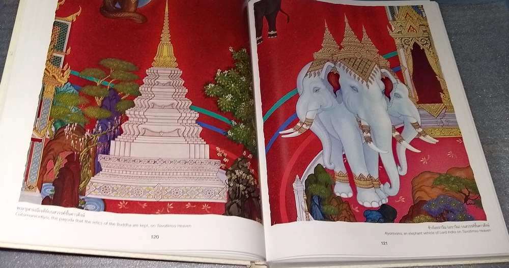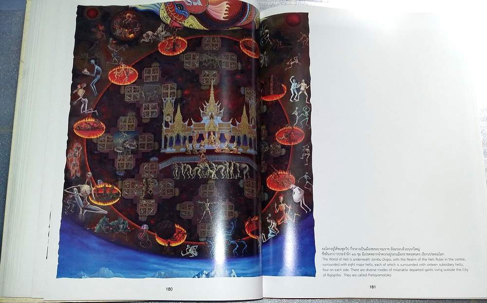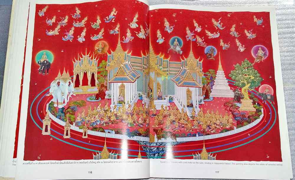 ไตรภูมิกถา ฉบับรัชกาลที่ 9 จัดพิมพ์เนื่องในโอกาส พระราชพิธีมหามงคลชนมพรรษา 7รอบ 5 ธันวาคม 2554 ม.ร.ว. จักรรถ จิตรพงศ์ ประธานคณะทำงานและคณะทำงาน ศ. ปรีชา เถาทอง รศ. สุรศักดิ์ เจริญวงศ์ อ. ปัญญา วิจินธนสาร ร่วมกันเป็นคณะทำงาน เพื่อสร้างภาพจากวรรณกรรมเรื่อง ไตรภูมิหนังสือปกแข็ง หนา 543 หน้า กระดาษอาร์ตมันทั้งเล่ม พิมพ์ 2 ภาษา ในเล่มไม่มีขาด ไม่มีหลุดครับ มีกล่องบรรจุครับ หนังสือสมบูรณ์ 2500 ครับ