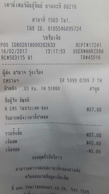| จัดส่งให้แล้วครับ ขอบคุณครับ |
