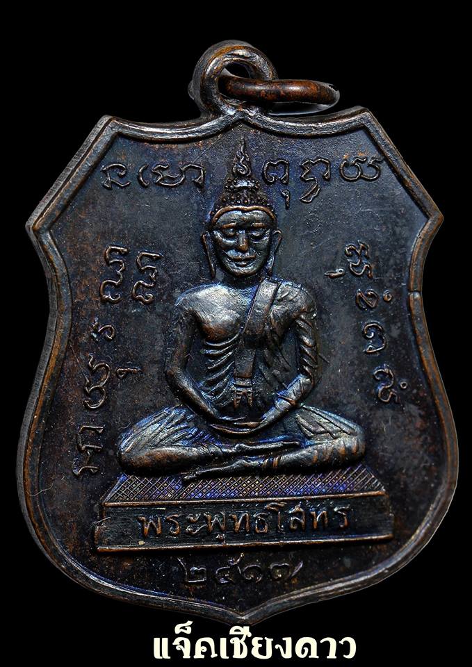 เหรียญหลวงพ่อโสธร หลังหลวงปู่แหวน สุจิณฺโณ สร้างปีพ.ศ.๒๕๑๗ เนื้อทองแดงรมดำเหรียญรุ่นนี้ได้จัดสร้างเมื่อครั้งสร้างพระเจดีย์ วัดดอยแม่ปั๋ง อ.พร้าว จ.เชียงใหม่ โดยมีคณะกรรมการจัดสร้างพระอาจารย์ทองเจือ วัดปากน้ำภาษีเจริญ คุณลุงแก้ว นายแพทย์สุพจน์ คุณเดชาคุณเชาว์ ศิริรัตน์ ได้มีเจตนาร่วมกันจัดสร้างพระเครื่องขึ้นถวายหลวงปู่แหวน สุจิณฺโณ เพื่อแจกเป็นที่ระลึกในโอกาสฉลองอายุหลวงปู่ด้วยจำนวนหนึ่ง และอีกส่วนหนึ่งนำออกให้ประชาชนเช่าบูชาเพื่อหารายได้สร้างสะพานตรงทางเข้า วัดดอยแม่ปั๋ง และสมทบทุนสร้างพระเจดีย์ถวายแด่หลวงปู่แหวน สุจิณฺโณ เหรียญหลวงพ่อโสธร รุ่นนี้ด้านหน้าได้ถอดแบบมาจากเหรียญหลวงพ่อโสธร ปีพ.ศ.๒๔๖๐ ด้านหลังเป็นรูปหลวงปู่นั่งในกลดมีบาตร,กาน้ำและตอกโค๊ดสุจินโณ กำกับไว้ทุกเหรียญ สร้างด้วยเนื้อทองแดงรมดำและผิวไฟ มีจำนวน 9,000 เหรียญ พิธีพุทธาภิเษกได้นิมนต์พระเกจิอาจารย์มาร่วมพิธีหลายรูป โดยมีหลวงปู่แหวน สุจิณฺโณ ท่านได้เมตตาเป็นประธานในพิธีร่วมด้วยหลวงปู่สิม พุทธาจาโร และพระอาจารย์ท่านอื่นๆอีกหลายรูป เหรียญหลวงพ่อโสธรหลังหลวงปู่แหวน ปีพ.ศ.๒๕๑๗ เป็นอีกหนึ่งเหรียญที่น่าสะสม น่าบูชา เพราะจะมีอยู่ในทำเนียบพระเครื่องหลวงพ่อโสธรและหนังสือทำเนียบรุ่น ของหลวงปู่ทิมร่วมเมตตาปลุกเสกเพิ่มอีกด้วยครับ กราบสาธุ โทร 0810312139 ครับ