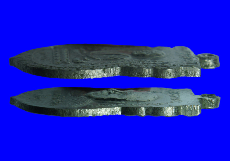 - ข้างแขนขวา มีอักษร (นูน) คำว่า “หลวงพ่อทวด” กำกับอยู่