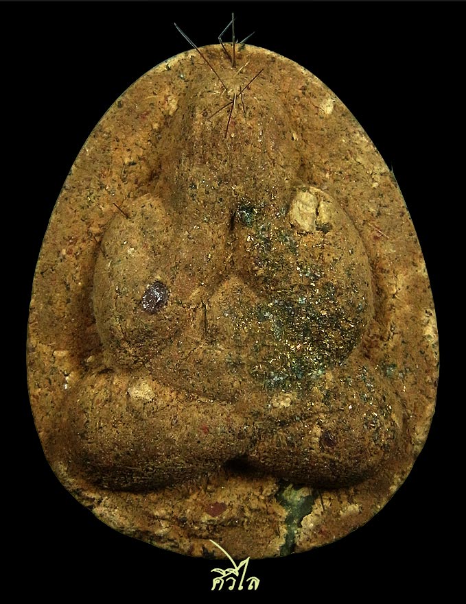 สีน้ำตาลฝั่งตะกรุดโรยพลอยฝั่งชิ้นส่วนสมเด็จวัดบวรฯ