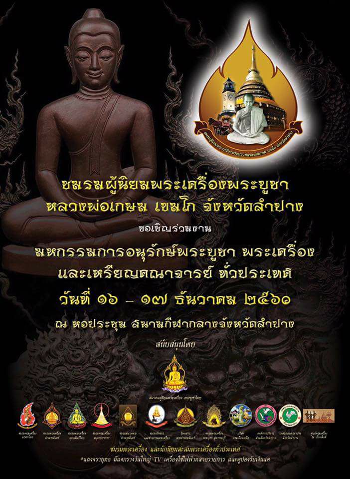 รางวัลที่2 งานนิทรรศการการประกวดการอนุรักษ์พระบูชา พระเครื่อง และเหรียญคณาจารย์ ของชมรมผู้นิยมพระเครื่องพระบูชาหลวงพ่อเกษม เขมโก จังหวัดลำปาง วันที่ 17 ธันวาคม 2560 ณ หอประชุมสนามกีฬากลางจังหวัดลำปาง