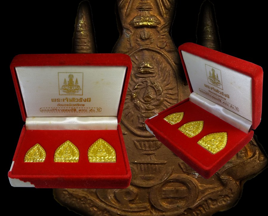 สมเด็จพระสังฆราช พระเจ้าสัวรังษีปิดทอง วัดบวรนิเวศวิหาร ฉลองสิริราชสมบัติ ครบ 50 ปี 2539 ครบชุด 3 องค์ เล็ก กลาง ใหญ่ พร้อม กล่องเดิม