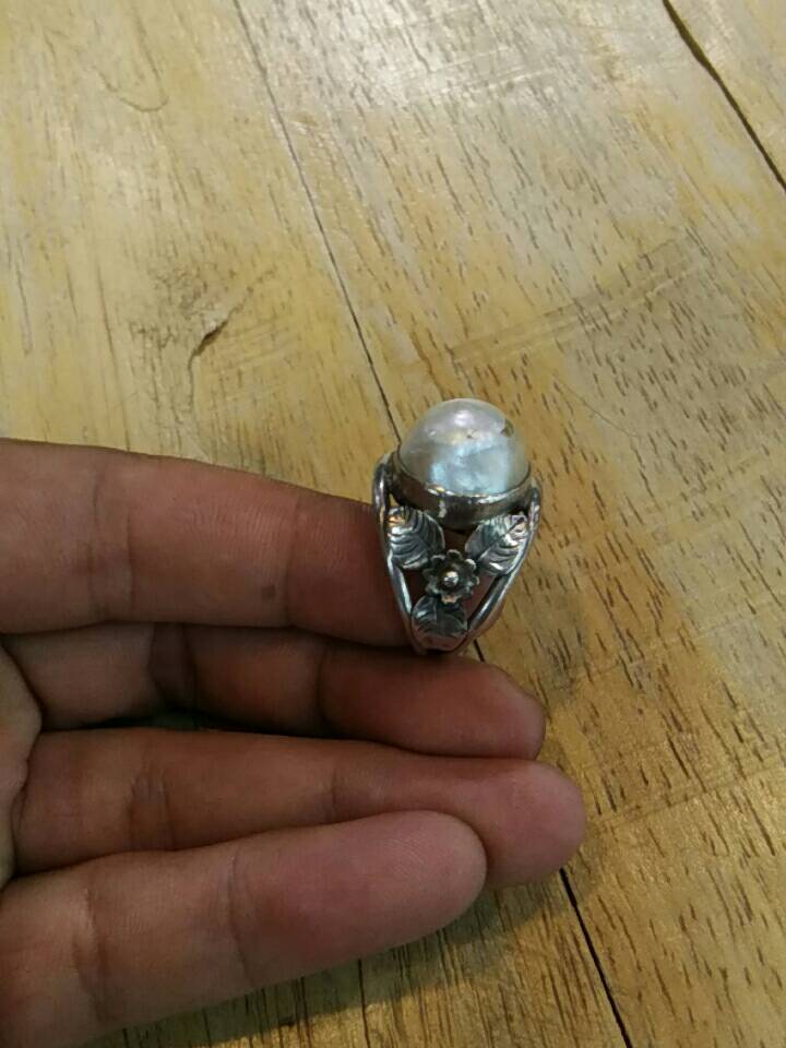 แหวนเงินงานสั่งทำลายโบราณ หัวประดับไข่มุก สวยคลาสสิค มาชมกัน