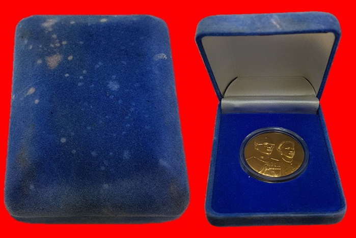 ปีที่สร้าง ประมาณ พ.ศ.2545 จำนวนการสร้างเพียง 5000 เหรียญเนื้อกระไหล่ทอง โดยมีเส้นผ่าศูนย์กลาง 3 ซม. ขนาดเหรียญหนา 0.3 ซม. เหรียญสวยงามมาก ไม่ผ่านการใช้เลย กล่องชำรุดตามภาพเปิดปิดใบ้งานได้ เหรียยนี้ของผมเองตุณพ่อผมรับเองกับมือตอนเป็นข้าราชการครับ เหรียญจริงสวยมากครับ ถ่ายไม่ค่อยชัด หายากครับท่านเหรียญสวยๆเดิมๆ