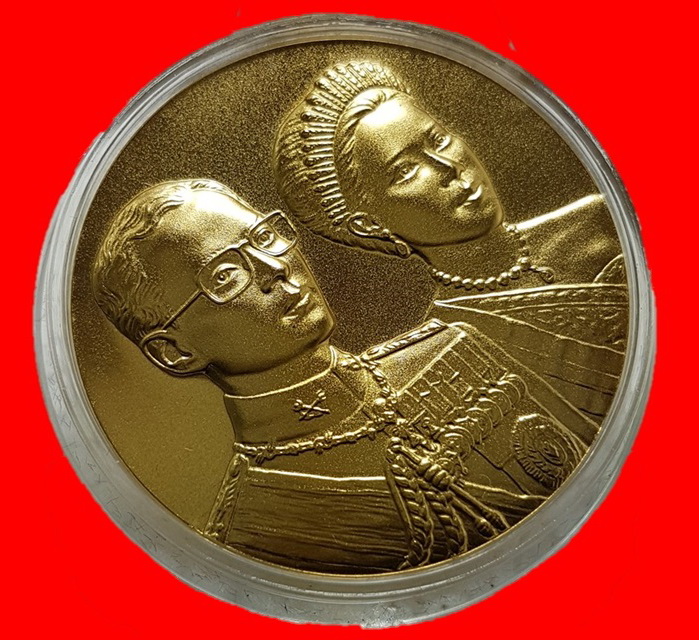 เหรียญพระราชทาน แจกเฉพาะข้าราชการที่เข้าเฝ้าเท่านั้น เนื้อเงินชุบทองขัดเงาพ่นทราย พร้อมกล่องเดิม