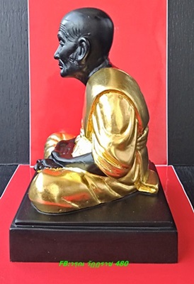 พระบูชา หลวงปู่ทวด วัดช้างให้ หน้าตัก 4 นิ้ว (( โลหะรมดำ จีวรปิดทอง )) ปี 2561
