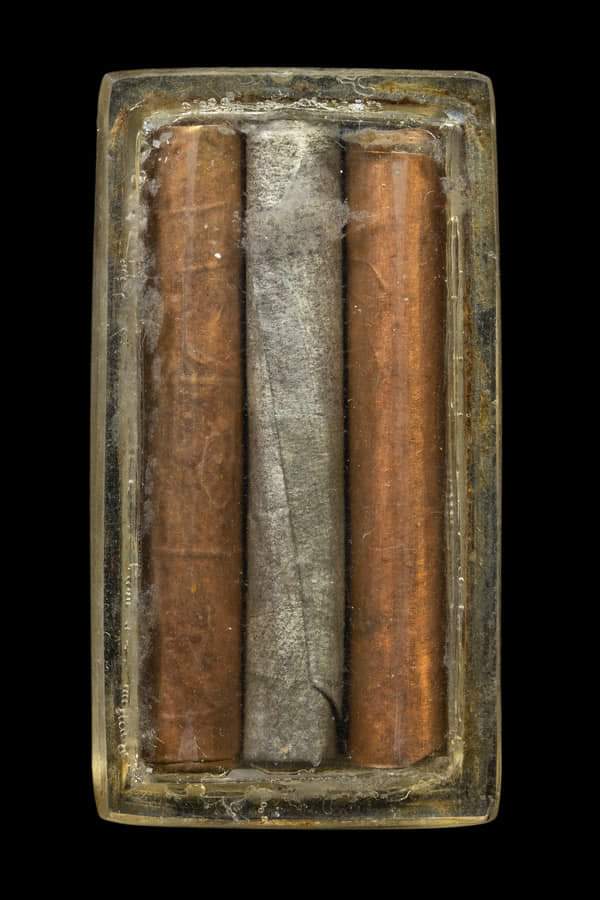 เคาะเดียวปิด : ตะกรุด 3 ดอก ยาว 1 นิ้ว พร้อมเลี่ยมพาสติกเดิมๆ ไม่ทราบที่