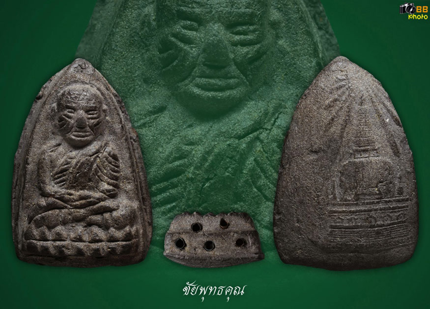 หลวงปู่ทวดหลังเจดีย์ วัดมหาธาตุ ปลุกเสกอธิษฐานจิตโดย หลวงพ่อคล้าย วัดสวนขันธ์ และหลวงพ่อด่วน วัดบางนอง ฝังตะกรุด 5 ดอก เนื้อว่าน ปี06
