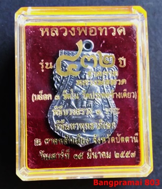 เหรียญเสมาหน้าเลื่อน 432 ปีชาตกาล ปีพ.ศ. 2557 เนื้อทองแดงรมดำโค๊ช๘๘๖๗(บล็อก3 ขีดใน รัดประคตข้างเดียว) พิธีบวงสรวง 3 วาระ พิธีมหาพุทธาภิเษก ณ ศาลหลักเมือง จังหวัดปัตตานี วันเสาร์ที่ 15 มีนาคม 2557 พุทธคุณสุดยอดนิรันตราย ทางวัดได้ประกอบพิธีอันเชิญบารมีของหลวงปู่เข้าสถิตในองค์พระนี้แล้วมีคุณอภินิหาร คุ้มครองป้องกันนานาประการครับ และพุทธศิลป์สวยงาม