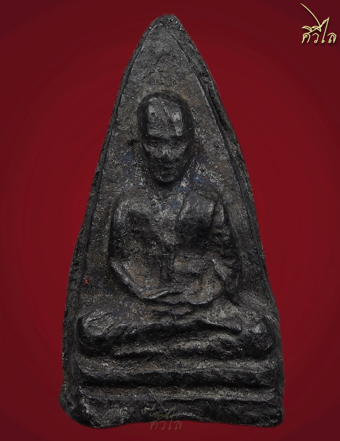 #พระรูปเหมือนครูบาเจ้าศรีวิชัยรุ่นอัฐิหลังย่น เนื้อดำ ก้นอุด