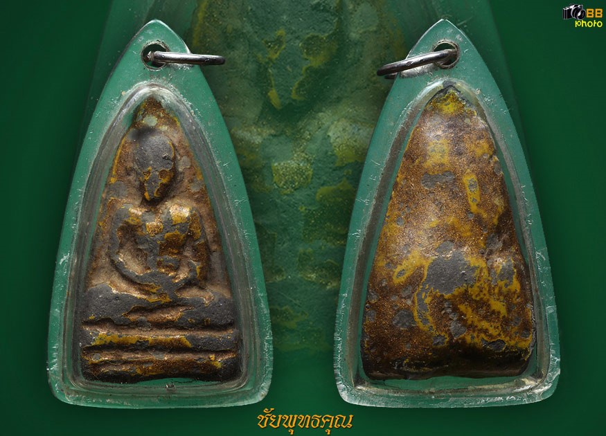 พระรูปเหมือนครูบาศรีวิชัย สิริวิชโย รุ่นอัฐิหลังย่น เนื้อดำสภาพใช้ พระรูปเหมือนครูบาเจ้าศรีวิชัยรุ่นอัฐิหลังย่นหรือที่เรียกกันทั่วๆ ไปว่าพระครูบาหลังย่น เป็นพระเครื่องเนื้อดินเผาผสมเถ้าอัฐิครูบาเจ้าฯ อัฐิ ในที่นี้น่าจะหมายถึงขี้เถ้ามากกว่าส่วนที่เป็นกระดูก คนล้านนาเรียกว่า เถ้าเฝ่าหรือดินเฝ่า เถ้าเฝ่าหรืออัฐิที่ใช้เป็นมวลสารสร้างพระเครื่องรุ่นนี้ได้จากบริเวณที่ตั้งเมรุชั่วคราวในงานพระราชทานเพลิงศพครูบาเจ้าศรีวิชัยนักบุญแห่งล้านนา ณ วัดจามเทวี ลำพูน เมื่อวันที่ ๒๑ มีนาคม พ.ศ. ๒๔๘๙ ผสมกับเศษพระสกุลลำพูนป่นและมวลสารอื่นๆ การสร้างพระเครื่องรุ่งดังกล่าวนี้ มีผู้บันทึกไว้ชัดเจนว่า สร้างเมื่อวันที่ ๒๒ พฤศจิกายน พ.ศ. ๒๔๘๙ จนถึงต้นปี พ.ศ. ๒๔๙๑ ถือว่าเป็นรุ่นที่ ๑ โดยมีพระครูประสาสน์สุตาคม เป็นองค์ประธานจัดสร้าง รุ่นที่ ๒ สร้างเมื่อ วันที่ ๑๕ เมษายน พ.ศ. ๒๔๙๖ และกล่าวกันว่า รุ่นที่ ๓ สร้างขึ้นเมื่อปี พ.ศ. ๒๕๐๕ โดยครูบาทึม พรหมเสโน รุ่นนี้ที่ใต้ฐานเจาะรูบรรจุเส้นเกศาครูบาเจ้าฯ ส่วนรุ่นสุดท้าย สร้างขึ้นเมื่อปี พ.ศ. ๒๕๑๑ รุ่นนี้ด้านหลังจะมีชื่อวัดจามเทวีประทับเป็นเครื่องหมาย ลักษณะของพระรุ่นอัฐิหลังย่นนี้ทุกรุ่นมีขนาดใกล้เคียงกันเท่ากัน มีหลายสี เช่น สีเขียว สีดำ สีแดง สีเหลือง สีอมเทา สีขาว องค์ที่สีเข้มมักจะมีขนาดย่อมกว่า และพบจำนวนน้อยกว่า มีรูปครูบาเจ้าศรีวิชัยนั่งขัดสมาธิเต็มองค์ เห็นลูกประคำ ผ้ารัดอก บางองค์เห็นใบหน้าชัดเจน ด้านหลังองค์พระตกแต่งให้ดินพูนพองาม เนื้อดินมีลักษณะเหี่ยวย่นคล้ายผิวหนังคนมีอายุ จึงได้ชื่อว่า รุ่นหลังย่น เนื่องจากเป็นพระเครื่องเนื้อดินเผาสายสกุลลำพูนวิธีการคัดสรรเนื้อดินจึงได้เนื้อพระที่มีวรรณะไม่ต่างจากพระสกุลลำพูนโดยทั่วไป โดยเฉพาะพระอัฐิหลังย่นรุ่นแรกๆ ดูจะพิถีพิถันเป็นพิเศษ จุดประสงค์การสร้างพระครูบาเจ้าฯ รุ่นนี้ กล่าวกันว่าเพื่อหาทุนสร้างกู่ธาตุที่บรรจุอัฐิธาตุครูบาเจ้าฯ ในที่ต่างๆ ธุเจ้าเอาพระเครื่องใส่พานไว้กลางวิหาร วัดจามเทวี ใครต้องการเช่าบูชาก็หยอดเงินในตู้ องค์ละ ๕๐ สตางค์ หรือ ๑ บาท ตามกุศลเจตนา พอพระเครื่องใกล้จะหมดก็สร้างขึ้นอีกตามเวลาที่กล่าวข้างต้น ด้วยว่าพระเครื่องรุ่นนี้ มีส่วนผสมสำคัญคือเถ้าอัฐิของครูบาเจ้าฯ ถือว่าศักดิ์สิทธิ์ในตัวอยู่แล้ว เช่นเดียวกับพระเกศาครูบาเจ้าฯ ที่แกนใจแห่งความนับถืออยู่ทีเส้นเกศา มิใช่อยู่ที่รูปแบบภายนอกของพระเครื่อง ทางด้านพุทธคุณ กล่าวกันอีกว่าพระเครื่องรุ่นนี้ ดีทางแคล้วคลา
