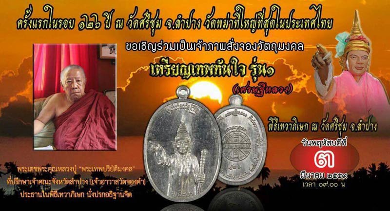 เปิดเหรียญ เทพทันใจ เศรษฐีหลวง รุ่นแรก หมายเลข ๒๙๒๗ วัดศรีชุม ปี 2559 เนื้อทองแดง #ตอกโค๊ตพม่าทุกเหรียญทุกเหรียญต้องรันนัมเบอร์และไม่ซ้ำกัน (ปัจจุบันรุ่นนี้ได้หมดไปจากวัดตั้งแต่ปี 59) พิธีมหาเทวาภิเศก ระหว่างพระเกจิไทยและพระเกจิทางประเทศเมียนมา การสร้างวัตถุมงคลในครั้งนี้ถือ ครั้งแรกในรอบ ๑๒๖ ปี ตั้งแต่ก่อตั้งวัด ณ วัดศรีชุม จ.ลำปาง วัดที่ได้รับการยกย่องว่าเป็นวัดพม่าที่ใหญ่ที่สุดในประเทศไทย เลี่ยมกรอบผ่าหวาย(ไมครอน) ราคาหลักร้อย รับประกันแท้