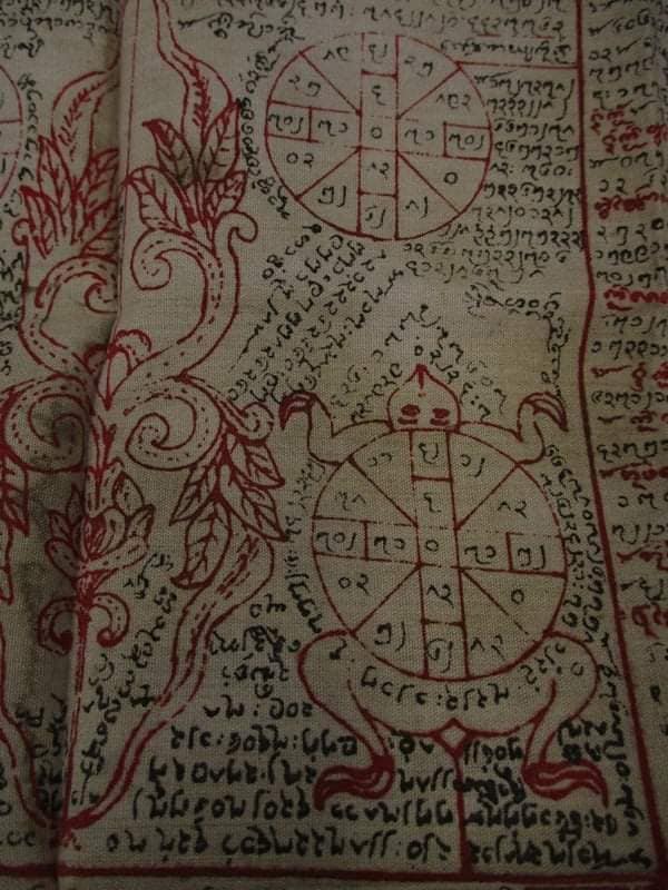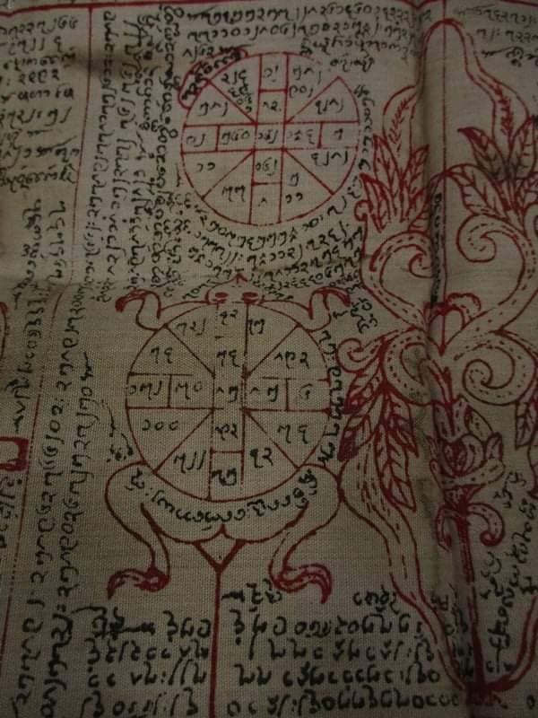 ผ้ายันต์ อักขระธรรม แปดหมื่นสี่พัน พระธรรมขันธ์ และ อักขระเงิน อักขระทอง หมึกสกรีน ของ ครูบาคำแปง เมืองรัฐฉาน ไทยใหญ่ ผู้สืบทอดตำนานผ้ายันต์ ครูบายอด แห่งเมืองย่างกุ้ง ประเทศเมียนม่า ผู้ใดบูชาพกไว้กับตัว จะมีแต่ความสุขความเจริญในชีวิตหน้าที่และการงาน มีแต่โชคลาภเงินทองไหลมาเทมา โดยไม่รู้ตัว พกไว้ในบ้าน จะป้องกันภัยภยันตราย ทั้งปวง