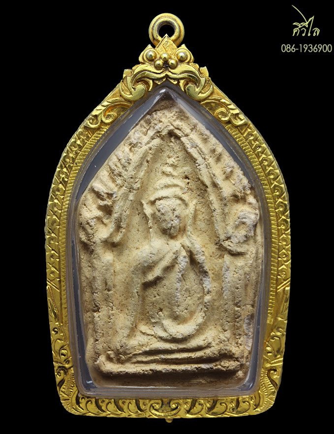 พระขุนแผนรุ่นแรกครูบาจันต๊ะ อนาวิโล วัดหนองช้างคืน พิมพ์ตาโปน เลี่ยมเงินชุบทอง