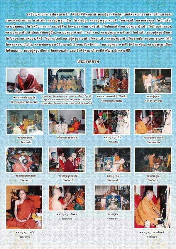 ปลุกเสกเมื่อ 9พฤศจิกายน 2545 พระเกจิที่ร่วมปลุกเสกประกอบด้วย หลวงปู่ครูบาดวงดี วัดท่าจำปี หลวงปู่ครูบาอิน วัดทุ่งปุย หลวงพ่อเปลี่ยน วัดอรัญญวิเวก หลวงปู่ครูบาอินคำ วัดข้าวแท่นหลวง หลวงปู่ครูบาคำหล้า วัดป่าลาน หลวงปู่ครูบาก๋องคำ วัดดอนเปา ครูบาเจ้าเทือง วัดบ้านเด่น หลวงปู่ครูบาเผือก วัดไชยสถาน หลวงปู่ครูบาตั๋น สำนักสงฆ์ม่อนปู่อิ่น พระเกจิที่อฐิษฐานจิต ได้แก่... หลวงพ่ออุตตมะ วัดวังก์วิเวการาม หลวงพ่อคูณ วัดบ้านไร่ หลวงปู่ทิม วัดพระขาว อยุธยา หลวงพ่อเพิ่ม วัดป้อมแก้ว อยุธยา