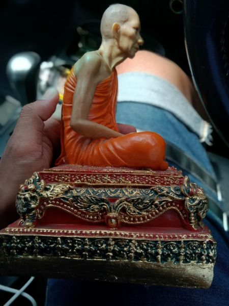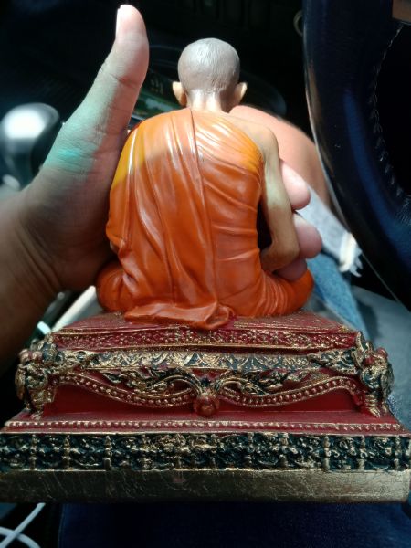 พระบูชาหลวงพ่อเกษม 5 นิ้ว เนื้อเรซิ่นลงสี ใต้ฐานเป็นหนังแดง