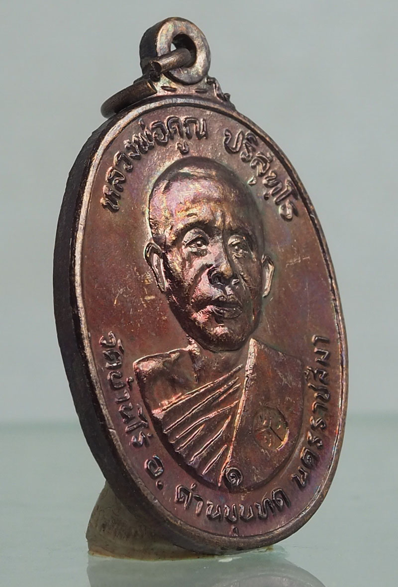 เหรียญหลวงพ่อคูณ วัดบ้านไร่ รุ่นที่ระลึกสร้างศาลาการเปรียญ วัดตลาดไทรเก่า ปี พ.ศ.2522 เนื้อทองแดง